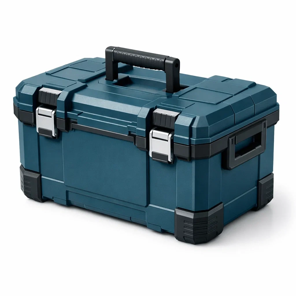 Boîte à outils en plastique avec verrouillage métallique