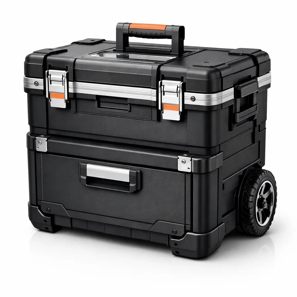 Boîte à outils portable à roulettes en plastique et métal