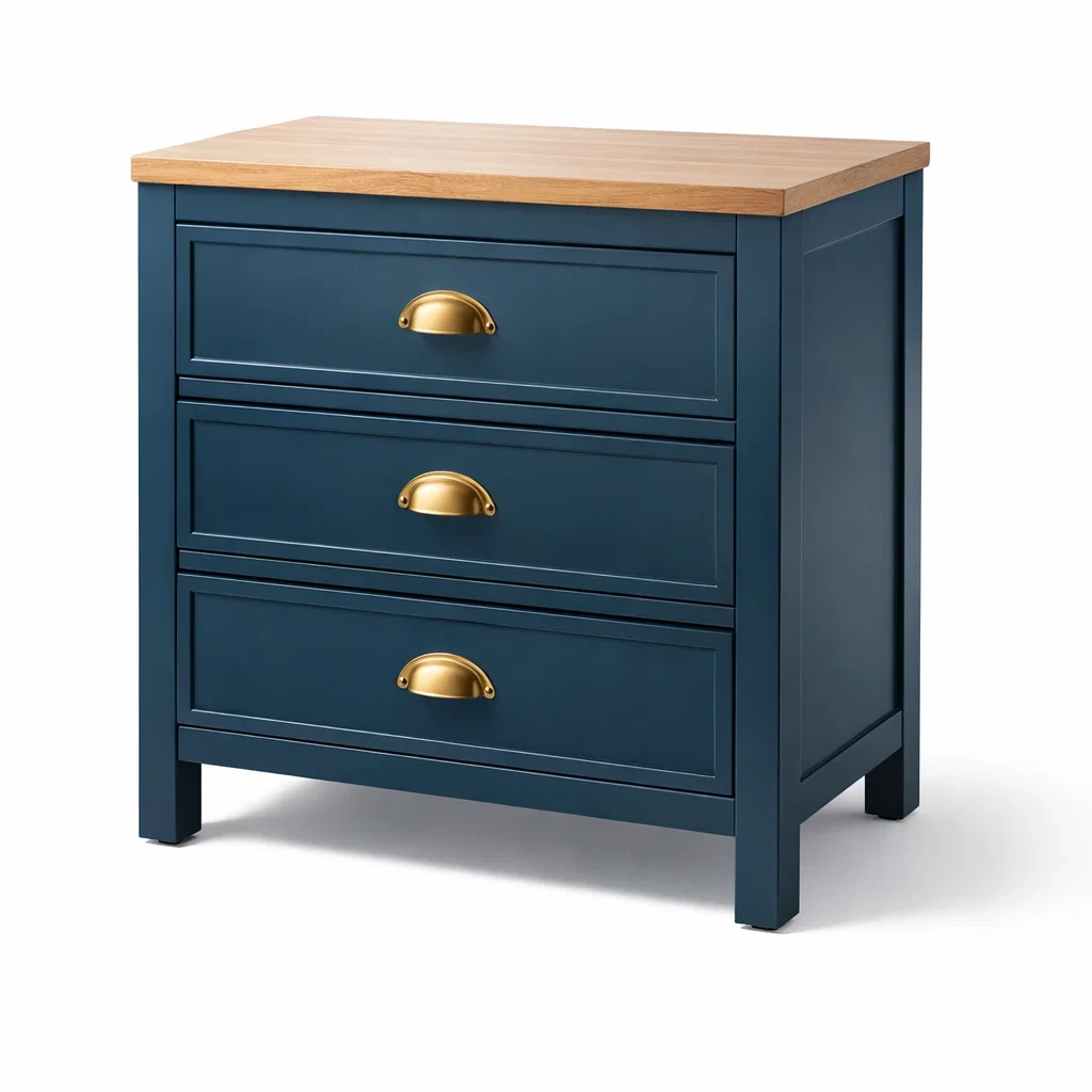 Commode en bois bleu turquoise avec 3 tiroirs 80 x 40 x 80 cm