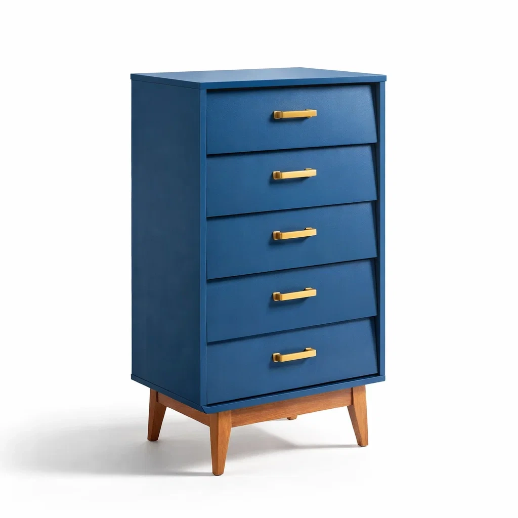 Commode en bois et métal bleu avec 5 tiroirs