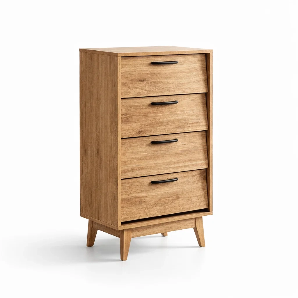 Commode en mdf avec placage chêne clair et 4 tiroirs