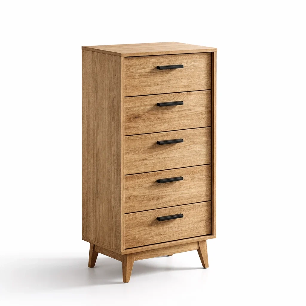 Commode en bois et métal chêne clair avec 5 tiroirs