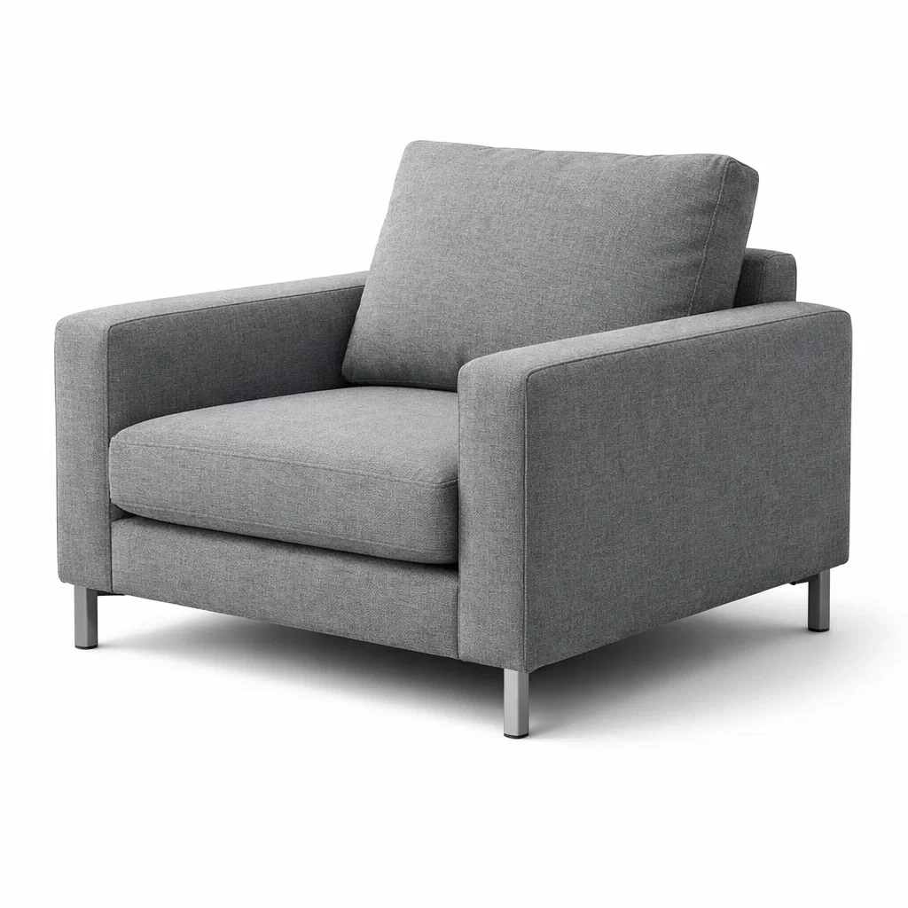 Fauteuil en tissu polyester gris avec pieds en métal