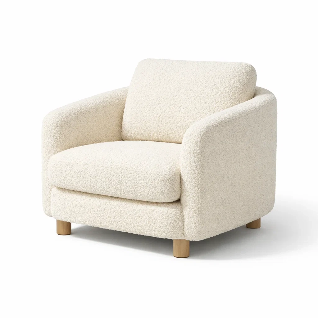 Fauteuil en tissu bouclé avec pieds en bois