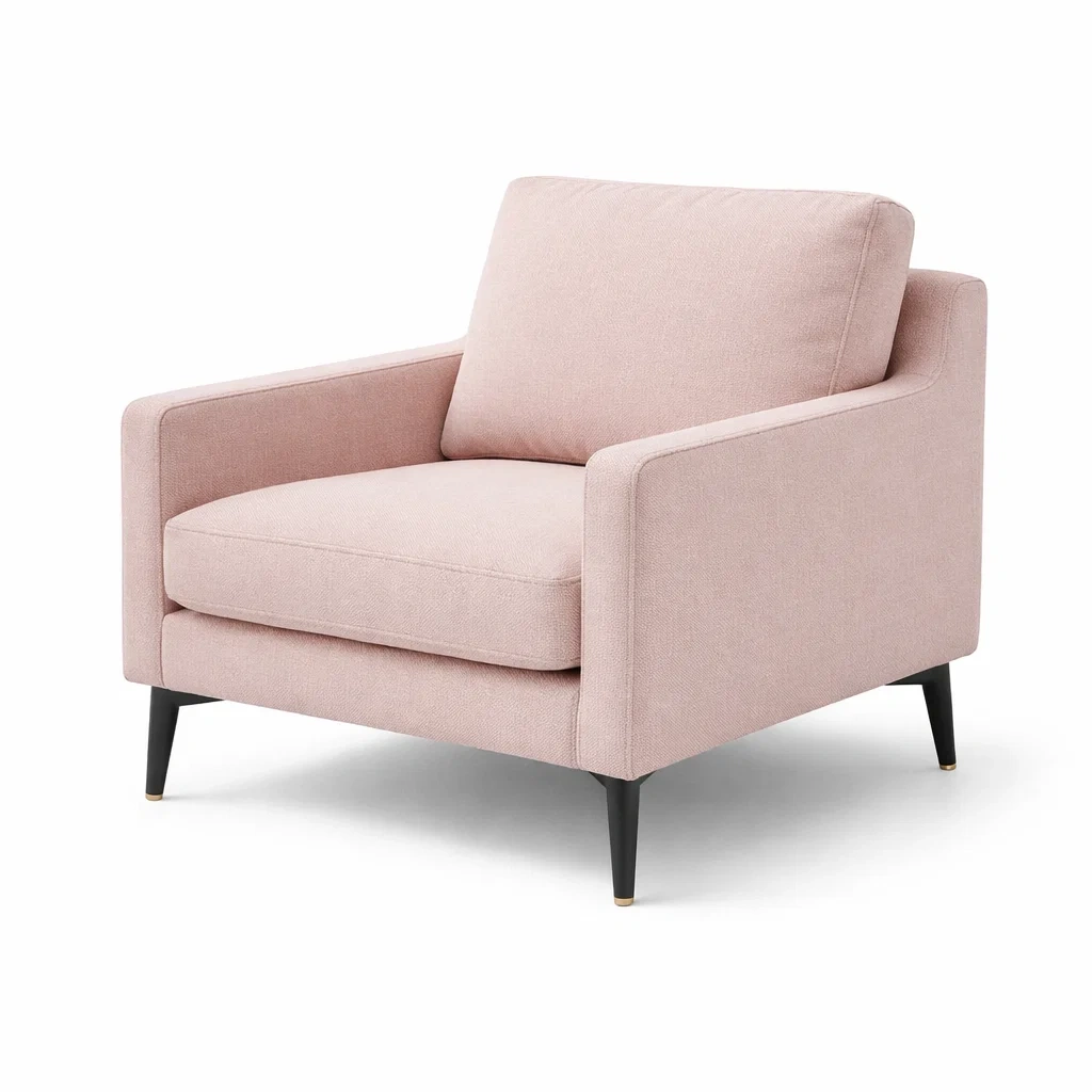 Fauteuil en tissu polyester rose avec pieds en métal noir