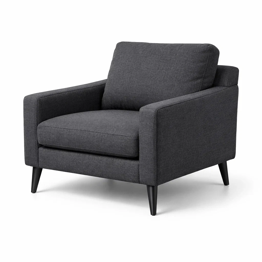 Fauteuil en tissu gris avec pieds en bois