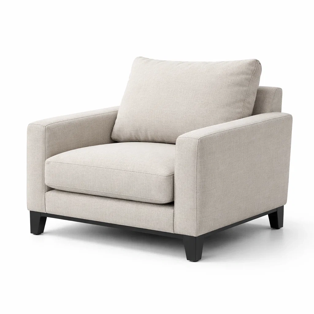 Fauteuil en tissu beige avec pieds en bois