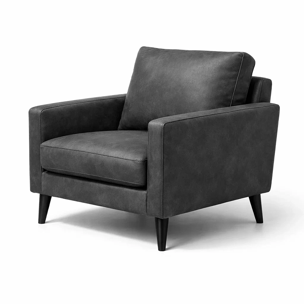 Fauteuil en cuir synthétique noir avec pieds en bois